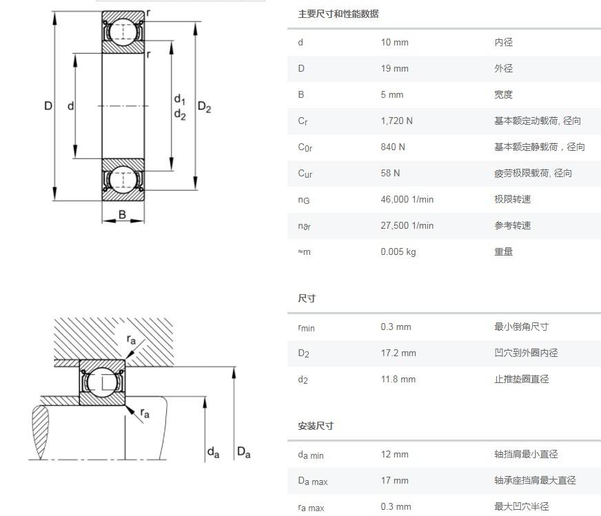 SIAIF不銹鋼深溝球軸承 S61800-2Z 詳細參數(shù)