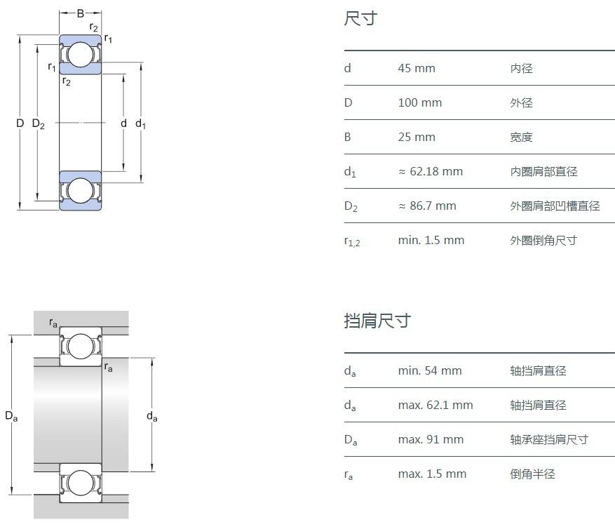 SIAIF不銹鋼深溝球軸承 S6309-2Z 詳細參數(shù)