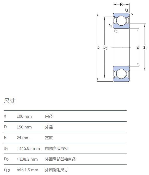 SIAIF不銹鋼深溝球軸承 S6020-2Z 詳細(xì)參數(shù)