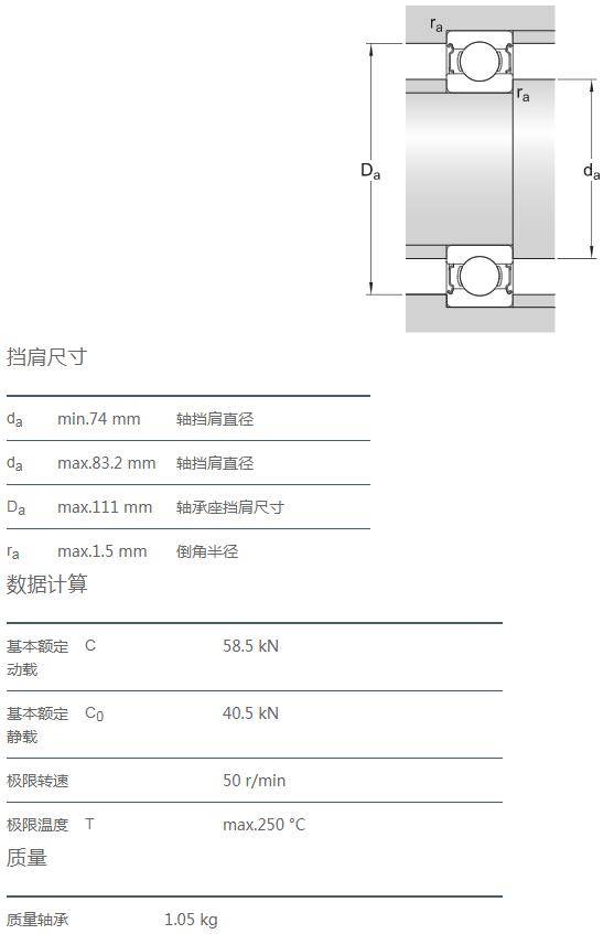 VA201用于高溫應(yīng)用的軸承,配有沖壓鋼保持架、經(jīng)軸承的套圈和滾動(dòng)體經(jīng)過錳磷化處理,徑向游隙為多倍 C5 游隙,且使用聚亞烷基二醇(PAG)/石墨的混合物進(jìn)行潤滑