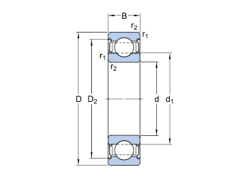 外圈肩部凹槽直徑r1,2min.1.1 mm