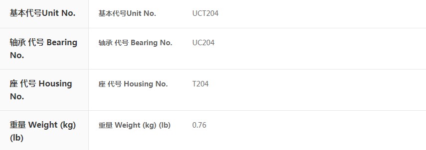 SIAIF滑塊帶座外球面軸承 UCT204 詳細(xì)參數(shù)